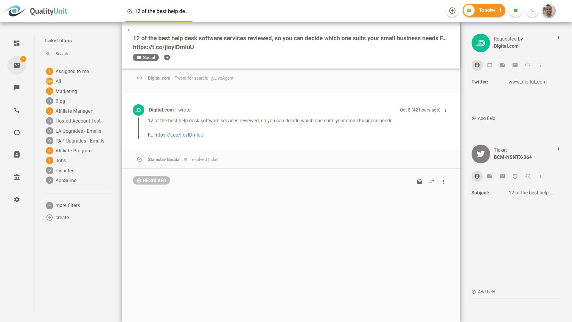 Οι εναλλακτικές για help desk κοινωνικών δικτύων είναι το μυστικό σας όπλο για να επιτύχετε οργάνωση και διαφάνεια σε διάφορα κοινωνικά δίκτυα. Συγκεντρώστε κάθε μήνυμα, σχόλιο και αναφορά σε έναν ενοποιημένο πίνακα διαχείρισης για να εξασφαλίσετε ότι θα απαντήσετε σε κάθε μήνυμα. Η εξυπηρέτηση χωρίς προβλήματα σας περιμένει!