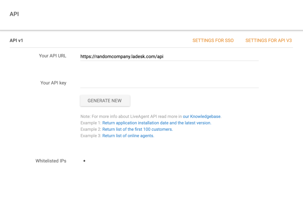 - Για να λάβετε το κλειδί API, ανοίξτε το LiveAgent και μεταβείτε στο Διαμόρφωση> API και επιλέξτε ΡΥΘΜΙΣΕΙΣ ΓΙΑ API V1 στην επάνω δεξιά γωνία. Δημιουργήστε ένα κλειδί, αντιγράψτε το και επικολλήστε το στην ενότητα διαμόρφωσης LiveAgent στο Post Affiliate Pro.
