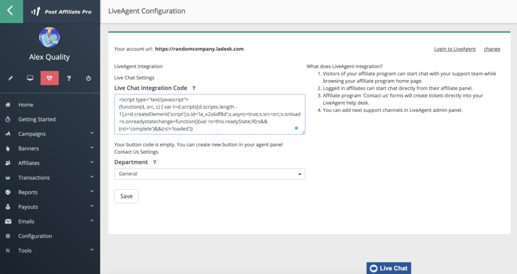 Πώς να ενσωματώσετε το LiveAgent με το Post Affiliate Pro
