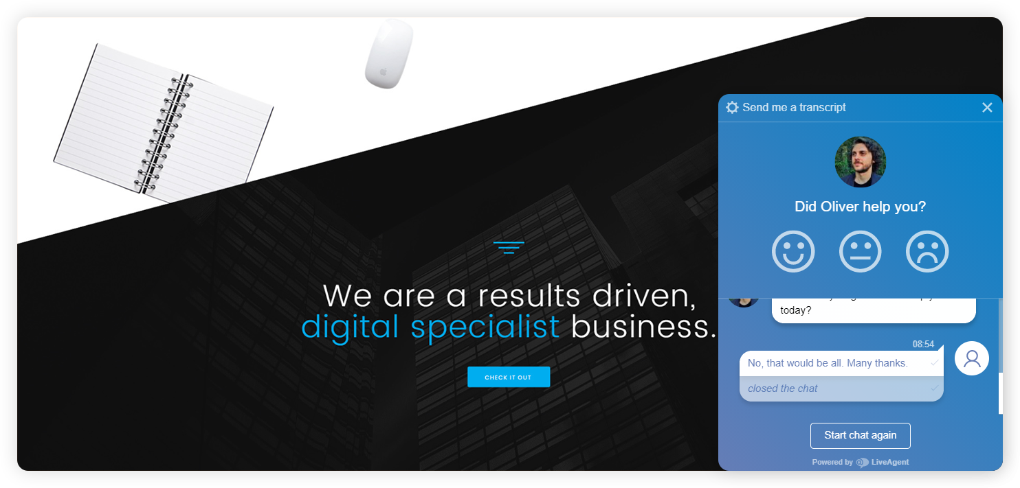 Αυτό που κάνει το λογισμικό συνομιλίας του LiveAgent μία εξατομικευμένη εμπειρία είναι ότι το χειρίζονται άνθρωποι και όχι chatbot. Απλά δίνοντας το όνομά τους, οι εκπρόσωποι μπορούν να διαβεβαιώσουν τους πελάτες ότι υπάρχει κάποιος άνθρωπος στην άλλη μεριά..