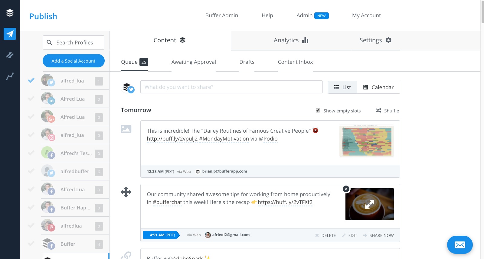 Το Buffer ενσωματώνεται με σχεδόν 30 άλλες λύσεις, συμπεριλαμβανομένων των Zapier, του automate.io και του integromat, επομένως οι δυνατότητες είναι απεριόριστες.