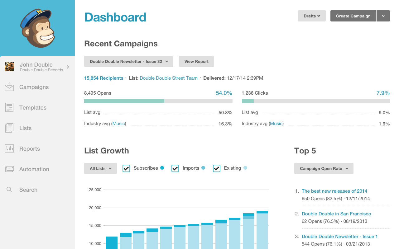 Οι χρήστες του MailChimp ενθουσιάζονται για το πόσο σπουδαίες είναι οι δυνατότητες του για μικρές επιχειρήσεις και πόσο απλό είναι στη χρήση του. Για παράδειγμα, το πρόγραμμα δημιουργίας email drag and drop διευκολύνει τη μορφοποίηση όμορφων email και η τεράστια λίστα ενσωμάτωσής του διευκολύνει τον συγχρονισμό δεδομένων με εξωτερικά CRM και παρόμοια λογισμικά.