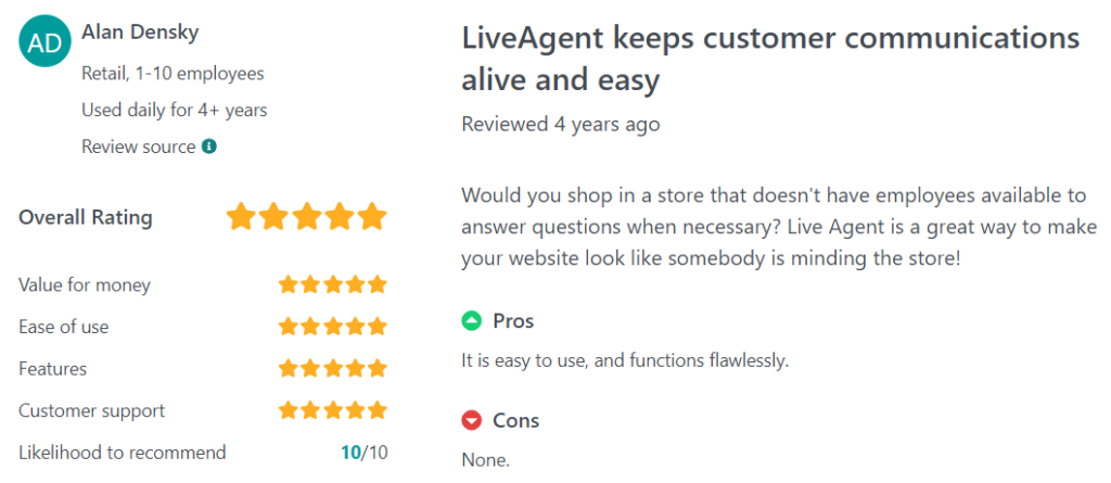 Ανακαλύψτε το LiveAgent, το κορυφαίο λογισμικό καρτελών για κέντρα εξυπηρέτησης του 2024! Παρέχει απρόσκοπτη εξυπηρέτηση πελατών σε κάθε κανάλι, χωρίς χρέωση εγκατάστασης ή πιστωτική κάρτα. Μετατρέψτε τα αιτήματα πελατών σε καρτέλες για εύκολη διαχείριση και απολαύστε 24/7 υποστήριξη. Ξεκινήστε τη δωρεάν δοκιμή σας σήμερα!
