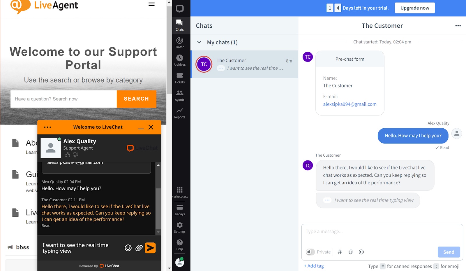 Η επισκόπηση του μηνύματος λειτούργησε τέλεια και συγκέντρωσε αυτό που έγραφα σε λιγότερο από ένα δευτερόλεπτο. Το μήνυμα παραμένει στην οθόνη όταν οι χρήστες δεν πατήσουν το κουμπί αποστολής, ώστε να μπορείτε να ετοιμάσετε τα άλλα μηνύματά σας. Εν τω μεταξύ, ο πελάτης βλέπει τρεις τελείες ως ειδοποίηση ότι ο αντιπρόσωπος πληκτρολογεί μια απάντηση σε αυτόν. Γενικά λειτουργεί πολύ καλά. Οι ταχύτητες απάντησης είναι σχεδόν άμεσες, χωρίς καθόλου μεγάλους χρόνους αναμονής.