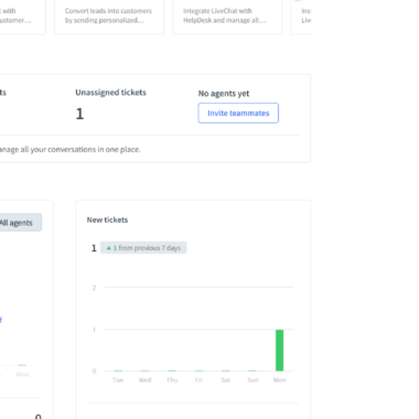 Το LiveChat προσφέρει ένα καλά εστιασμένο σύνολο λειτουργιών που σχετίζονται με το widget ζωντανής συνομιλίας τους. Εκτός από την προαναφερθείσα γρήγορη προβολή στατιστικών σε πραγματικό χρόνο, έχετε επίσης πρόσβαση σε άλλες λειτουργίες, όπως chatbot, αναφορές και εκτενείς επιλογές προσαρμογής για το widget ζωντανής συνομιλίας σας. Επιπλέον, η εμπειρία ζωντανής συνομιλίας έχει πλήρη υποστήριξη σε επισκόπηση μηνυμάτων, τυποποιημένες απαντήσεις, συνημμένα αρχεία, λειτουργίες ιστορικού συνομιλίας, αξιολογήσεις συνομιλιών και πολλά άλλα. Τίποτα σημαντικό δεν λείπει από τη ζωντανή συνομιλία LiveChat, ώστε να είστε βέβαιοι ότι απολαμβάνετε την πλήρη εμπειρία αντιπροσώπου συνομιλίας.