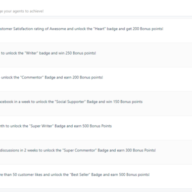 Με τις αποστολές, μπορείτε να ορίσετε στόχους απόδοσης για τους αντιπροσώπους υποστήριξής σας και να τους ευθυγραμμίσετε με τους επιχειρηματικούς σας στόχους. Αυτές οι αποστολές θα οδηγήσουν τους αντιπροσώπους σας να εκτελέσουν δραστηριότητες που ωφελούν την επωνυμία σας και βελτιώνουν τις δεξιότητές τους στην υποστήριξη πελατών. Αλλά δεν είναι μόνο αυτό! Ολοκληρώνοντας αποστολές, οι αντιπρόσωποι σας μπορούν να κερδίσουν πόντους μπόνους και μοναδικά σήματα που θα εμφανίζονται στα προφίλ τους, επιδεικνύοντας τα επιτεύγματά τους. Επιπλέον, η ολοκλήρωση εργασιών θα βελτιώσει τις πιθανότητές τους να κερδίζουν μηνιαία τρόπαια και να φτάσουν σε νέα ύψη στον πίνακα κατάταξης των αντιπροσώπων.