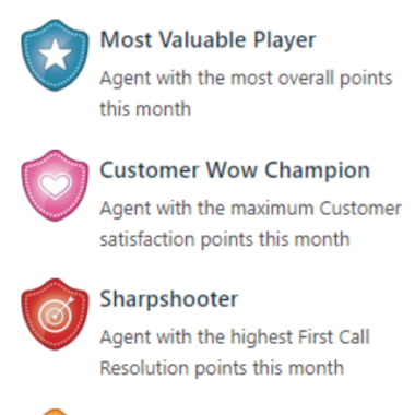 Από την εμπειρία μου με τις δυνατότητες gamification του Freshdesk, ανακάλυψα ότι υπάρχουν τέσσερα διαφορετικά τρόπαια που απονέμονται σε αντιπροσώπους με βάση τις μετρήσεις απόδοσής τους. Το πρώτο είναι το τρόπαιο του πολυτιμότερου παίκτη, το οποίο δίνεται στον αντιπρόσωπο με τους υψηλότερους συνολικούς πόντους για τον τρέχοντα μήνα. Το δεύτερο τρόπαιο είναι ο Πρωταθλητής Εξυπηρέτησης Πελατών, το οποίο απονέμεται στον αντιπρόσωπο με τους μέγιστους πόντους ικανοποίησης πελατών για τον μήνα. Το τρίτο τρόπαιο, που ονομάζεται Σκοπευτής, δίνεται στον αντιπρόσωπο με τους υψηλότερους πόντους Επίλυσης Πρώτης Κλήσης για τον μήνα, υποδεικνύοντας ότι ήταν σε θέση να λύσει αιτήματα με μία μόνο αλληλεπίδραση. Το τέταρτο τρόπαιο, το Ταχύτερος, δίνεται στον αντιπρόσωπο με τους μέγιστους πόντους για Γρήγορη Επίλυση, αναγνωρίζοντας την ικανότητά του να επιλύει αιτήματα σε λιγότερο από μία ώρα. Αυτό που είναι υπέροχο σε αυτό το σύστημα είναι ότι ο πίνακας κατάταξης επαναφέρεται την πρώτη κάθε μήνα, δίνοντας σε όλους μια νέα αρχή. Ως αντιπρόσωποι, μπορείτε να δείτε τα ονόματα όσων προηγούνται αυτήν τη στιγμή στον πίνακα κατάταξης απευθείας από τον πίνακα ελέγχου.