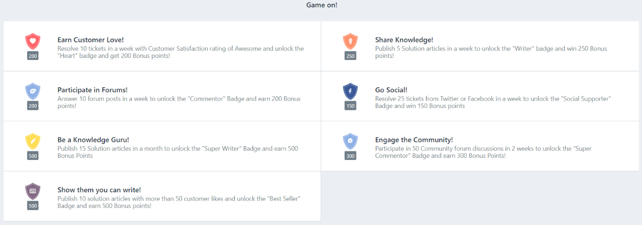 Οι δυνατότητες gamification που είναι διαθέσιμες στο Freshdesk μπορεί να είναι εξαιρετικά ωφέλιμες. Προσφέρουν μεγάλη ευελιξία στους διαχειριστές για να εξατομικεύσουν την εμπειρία χρήστη σύμφωνα με τις προτιμήσεις τους. Αυτό τους επιτρέπει να αξιοποιήσουν τη δημιουργικότητά τους και να προσαρμόσουν την εμπειρία για βέλτιστα αποτελέσματα. Επιπλέον, το σύστημα σημάτων και επιπέδων μπορεί να δημιουργήσει μια ατμόσφαιρα όπου οι αντιπρόσωποι μπορούν να ευδοκιμήσουν με θετική ενίσχυση αντί να βασίζονται απλώς στον ανταγωνισμό. Αυτή η ρύθμιση επιτρέπει επίσης σε όλους να εντοπίζουν εύκολα τους αντιπροσώπους με τις κορυφαίες επιδόσεις.