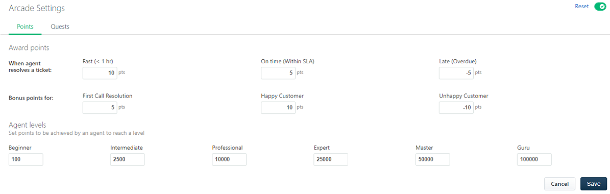 Μια άλλη από τις πτυχές που βρήκα ιδιαίτερα χρήσιμη είναι το σύστημα επιπέδων. Καθώς οι αντιπρόσωποι κερδίζουν πόντους για την επίλυση αιτημάτων και άλλων σχετικών δραστηριοτήτων κέντρου υποστήριξης, μπορούν να ανέβουν στην κατάταξη. Όσο υψηλότερη είναι η βαθμολογία, τόσο καλύτερη είναι η κατάταξη και τόσο πιο κοντά ένας αντιπρόσωπος φτάνει στο να γίνει κορυφαίος πρωταθλητής υποστήριξης πελατών. Αυτό που εκτιμώ σχετικά με αυτήν τη δυνατότητα είναι ότι επιτρέπει στον διαχειριστή να ορίσει τη γραμμή και να ορίσει τον αριθμό των πόντων που χρειάζεται να επιτύχει ένας αντιπρόσωπος για να φτάσει σε ένα συγκεκριμένο επίπεδο. Αυτό δημιουργεί μια σαφή και καθορισμένη διαδρομή για να ακολουθήσουν οι αντιπρόσωποι, παρέχοντάς τους μια αίσθηση κατεύθυνσης και κίνητρο. Ως αντιπρόσωπος, διαπίστωσα ότι αυτό το σύστημα παρακινεί τους ανθρώπους να εργαστούν σκληρότερα και να προσπαθήσουν για υψηλότερες βαθμολογίες, οδηγώντας τελικά σε βελτιωμένη εξυπηρέτηση πελατών και καλύτερα αποτελέσματα.