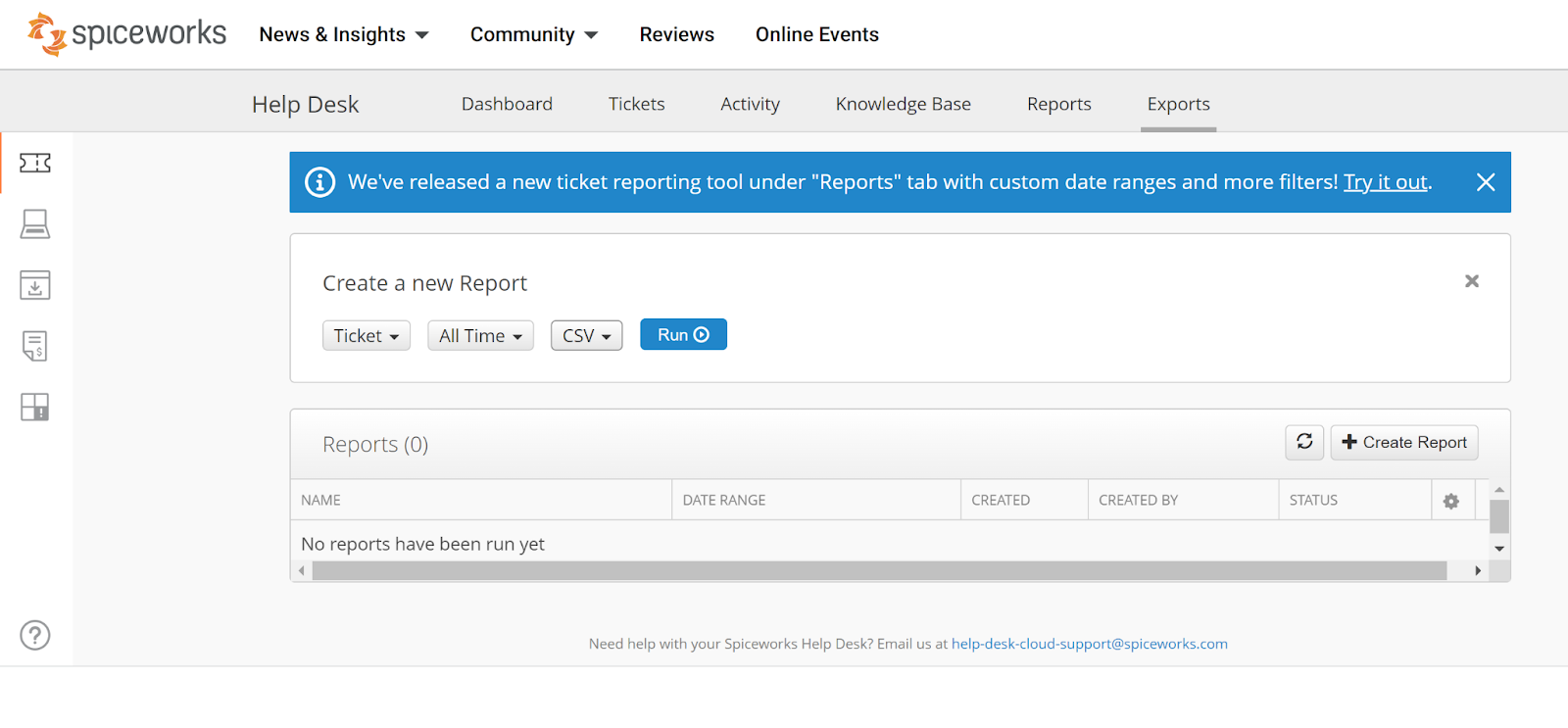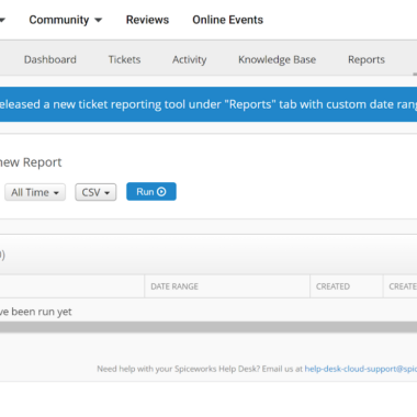 Η παρακολούθηση των δυνατοτήτων του Spiceworks δεν είναι εύκολη υπόθεση, καθώς ο ιστότοπος προσφέρει μόνο βασικές πληροφορίες σχετικά με τα δωρεάν εργαλεία τους. Ωστόσο, θα μπορείτε να έχετε μια καλή επισκόπηση του συνόλου δυνατοτήτων καρτελών του Spiceworks μόλις αρχίσετε να χρησιμοποιείτε την εφαρμογή. Μπορείτε να περιμένετε την τυπική λειτουργικότητα του κέντρου εξυπηρέτησης στο σύστημα καρτελών. Το Spiceworks μπορεί επίσης να σας βοηθήσει στη δημιουργία της δικής σας βάσης γνώσεων και να σας βοηθήσει με αναφορές. Μπορείτε επίσης να χρησιμοποιήσετε τη λειτουργία εξαγωγής για να εξαγάγετε τα δεδομένα της αναφοράς σας σε τρεις διαφορετικές μορφές.