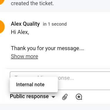 Το κουτί απάντησης δεν είναι ακριβώς ευρύχωρο, επομένως ένα από τα πρώτα πράγματα που με περιεργαζόμουν ήταν αν ανοίγει. Ανοίγει καθώς γράφετε, ωστόσο, ανοίγει προς τα πάνω αντί προς τα κάτω. Έχει μέγιστο μέγεθος και αν γράψετε πέρα από αυτήν την τιμή, θα πρέπει να βασιστείτε στην κύλιση από εκεί. Μπορείτε να αποκτήσετε πρόσβαση σε μερικά εργαλεία ακριβώς κάτω από το πεδίο απάντησης, δηλαδή συνημμένα, τυποποιημένες απαντήσεις και εσωτερικές σημειώσεις.