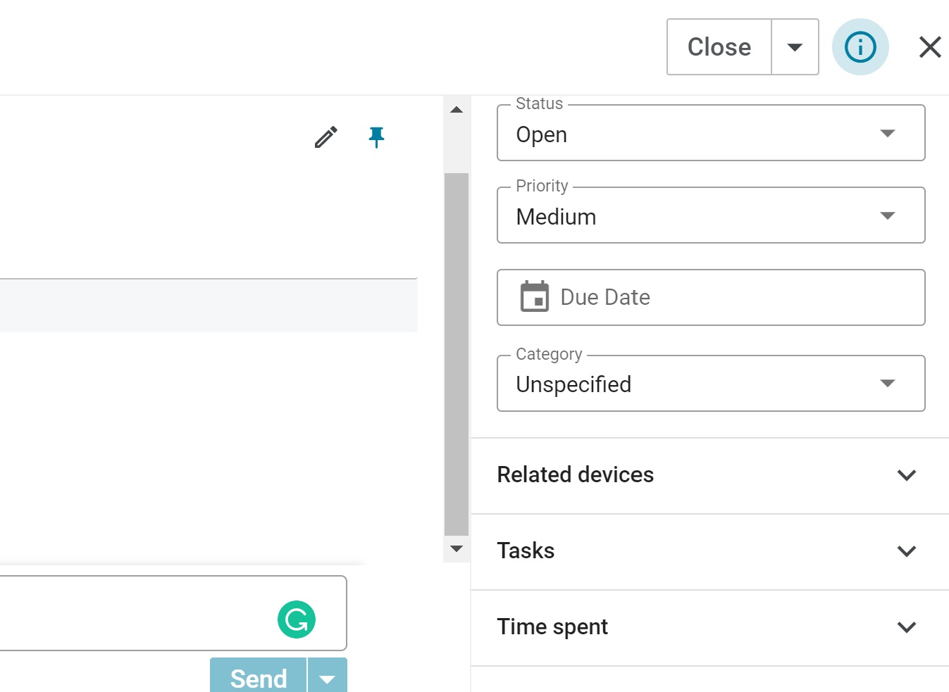 Το τελευταίο αναφερόμενο χαρακτηριστικό περιλαμβάνει τον πίνακα στη δεξιά πλευρά. Εδώ οι χρήστες μπορούν να έχουν πρόσβαση σε ορισμένες βασικές πληροφορίες σχετικά με τους πελάτες, τους υπεύθυνους για τα αιτήματα, την κατάσταση του αιτήματος, την προτεραιότητα, τις ημερομηνίες λήξης και την κατηγορία αιτήματος. Αυτός ο πίνακας σάς επιτρέπει επίσης να παρακολουθείτε τις σχετικές συσκευές, τις εργασίες, τον χρόνο που αφιερώνουν και τους χρήστες με κοινοποίηση. Αυτά είναι σχεδόν όλα όσα μπορείτε να περιμένετε από τις λειτουργίες του εργαλείου καρτελών του Spiceworks. Αν και δεν είναι το πλουσιότερο σύνολο δυνατοτήτων, καταφέρνει σίγουρα να παρέχει όλα τα απαραίτητα για τους αντιπροσώπους ώστε να κάνουν τη δουλειά τους με οργανωμένο τρόπο, ακόμα κι αν έχει μόνο τις ελάχιστες δυνατότητες.
